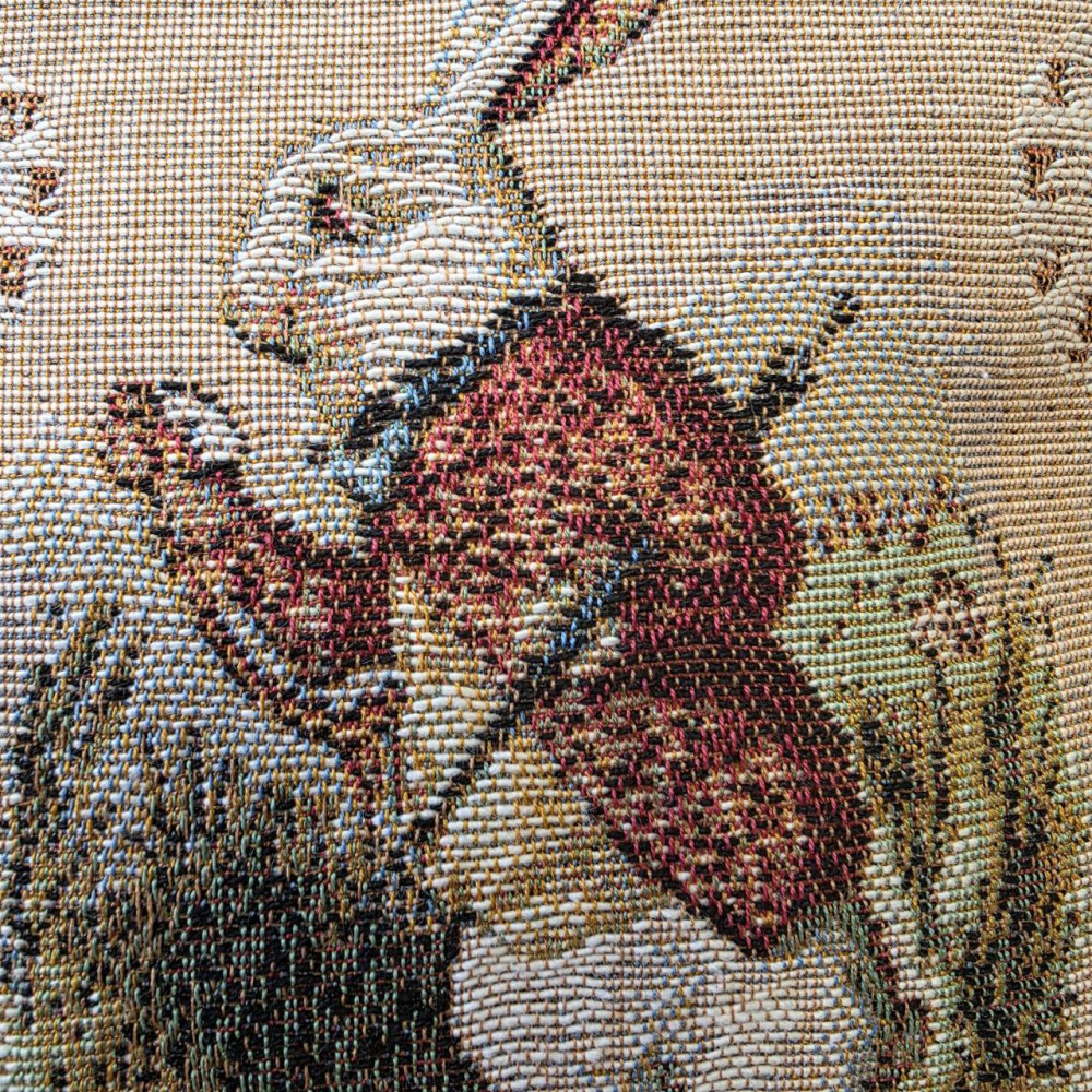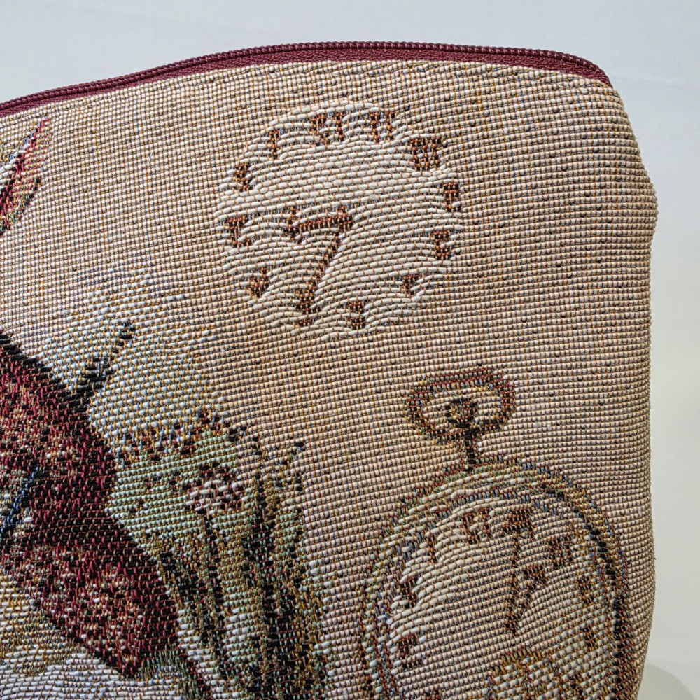Пориньте в світ Аліси в країні чудес з цією чудовою косметичкою з жаккардової тканини.