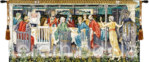 Гобелен также разработан сэром Эдвардом Берн-Джонсом и впервые сплетен в 1895-1986г.г. Сюжет представляет короля Артура и его рыцарей за круглым столом, среди которых сэр Боре, сэр Персиваль и сэр Ланселот.Оригинал находится в Бирмингем музее,художественная галерея.